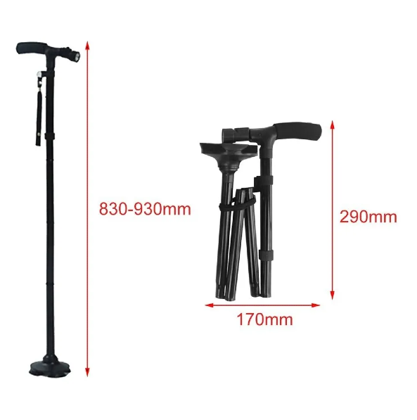 Bastón Plegable Y Regulable Con Luz / Base Rotacional