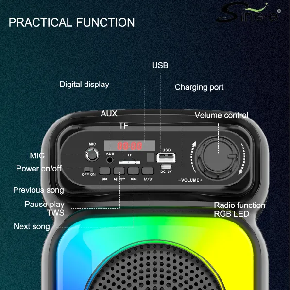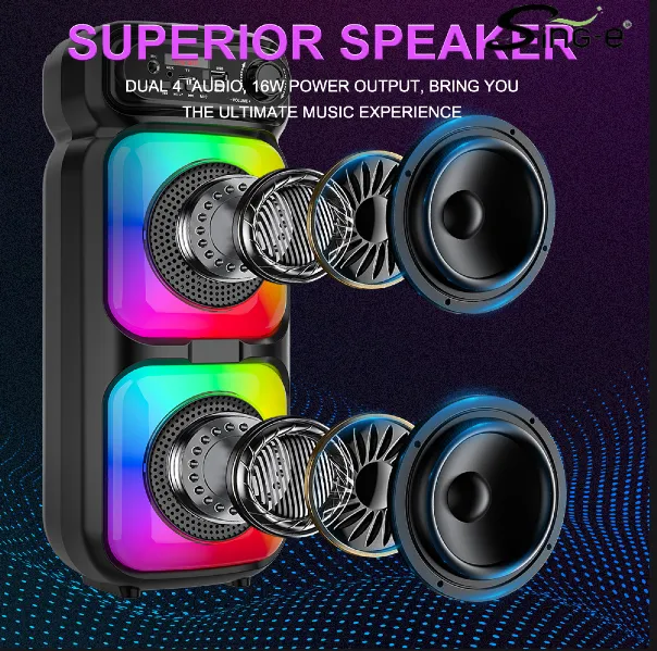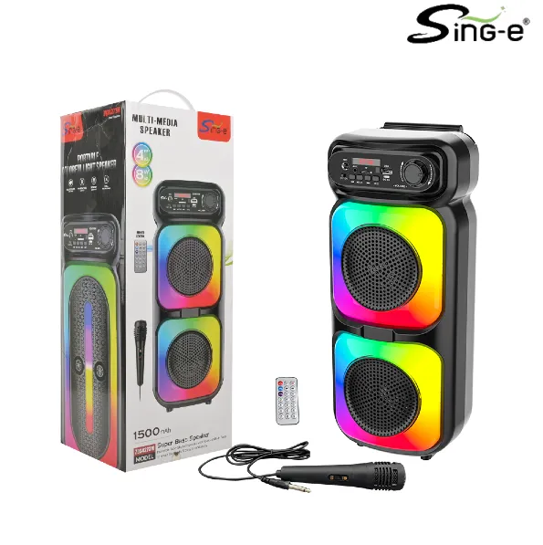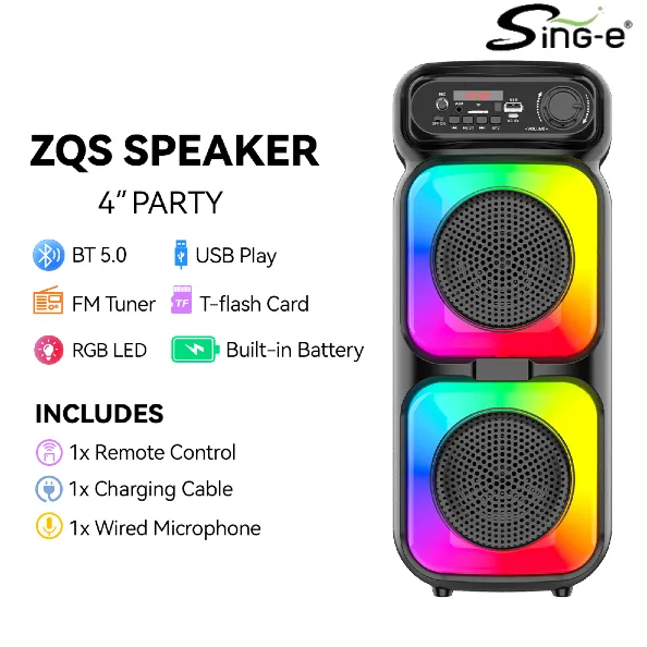 Parlante 4″x2 Bluetooth Con Micrófono Y Control / Radio FM / MicroSD / USB / AUX 3.5mm / 8Wx2 / 1500mah / Sing-e ZQS-4273M