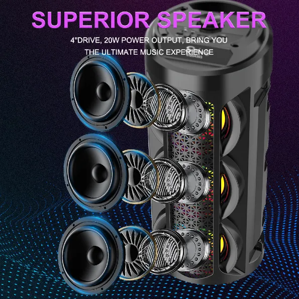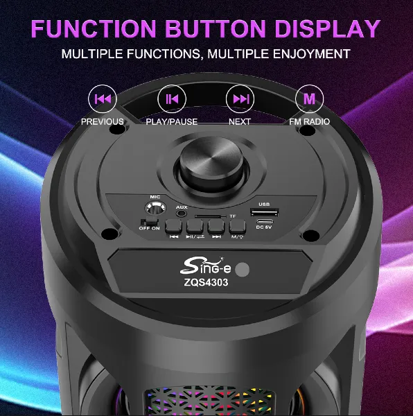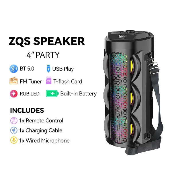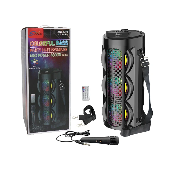 Parlante 4″x3 Bluetooth Con Micrófono Y Control / Radio FM / MicroSD / USB / AUX 3.5mm / 15W / 4800W P.M.P.O / 1800mah / Sing-e ZQS-4303