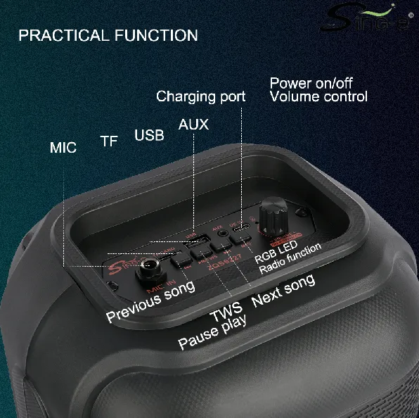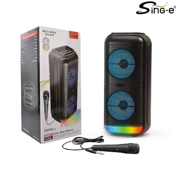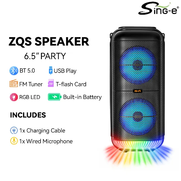Parlante 6″x2 Bluetooth Con Micrófono / Radio FM / MicroSD / USB / AUX 3.5mm / 10Wx2 / 3000mah / Sing-e ZQS-6227