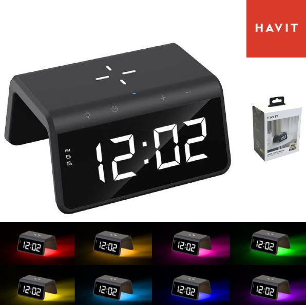 Reloj Alarma Digital Y Carga Inalámbrica ( QI ) 15W / Con Luces Led / HAVIT W320
